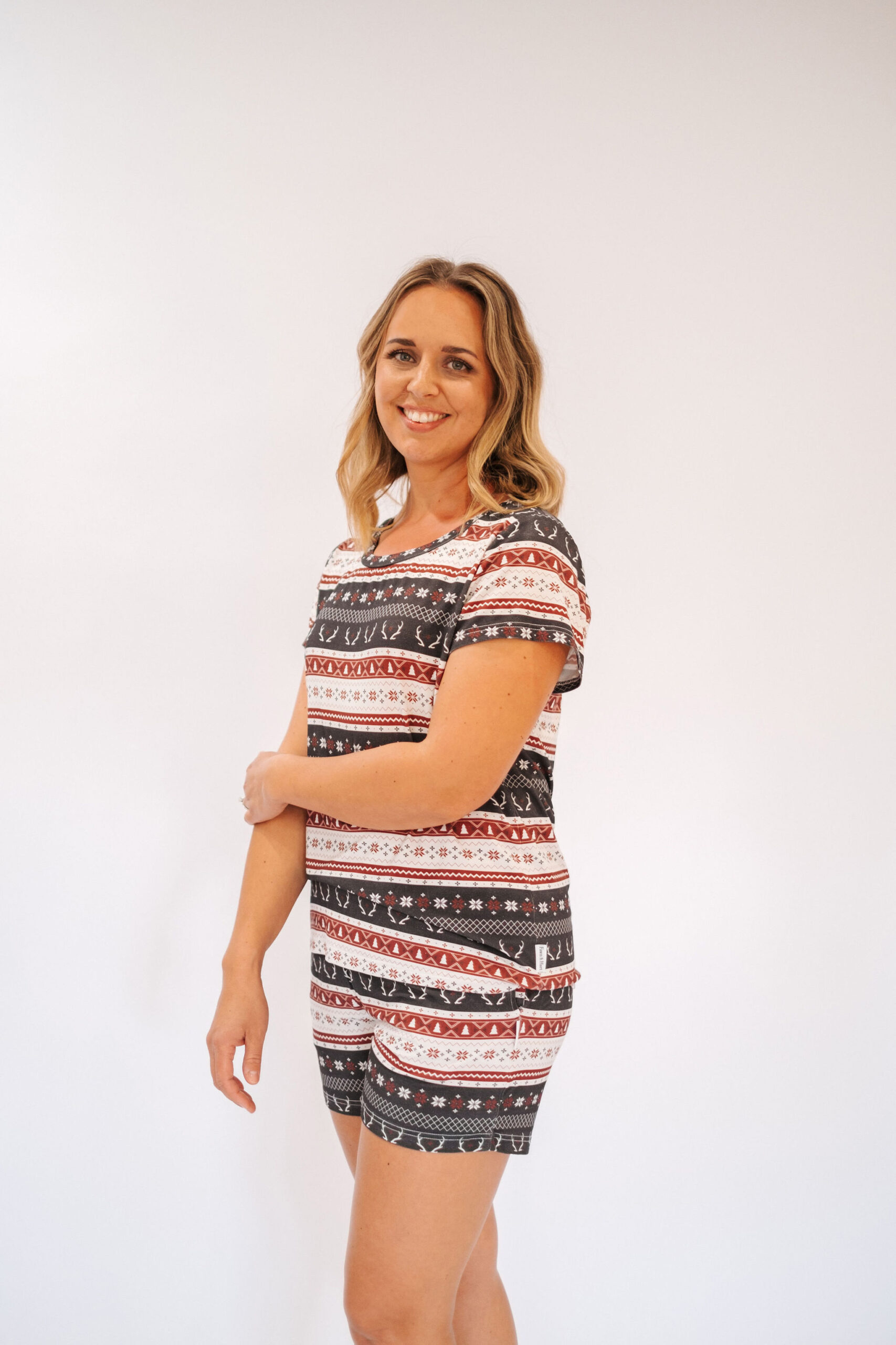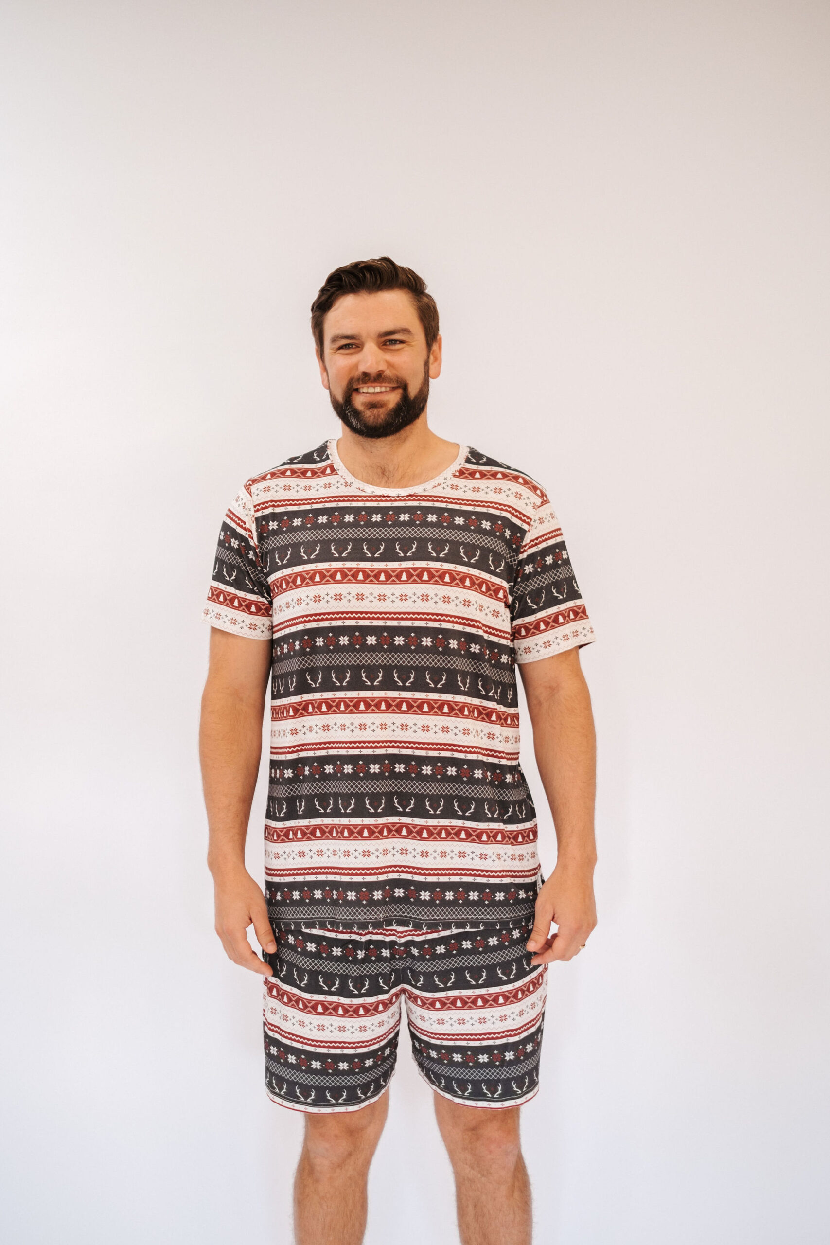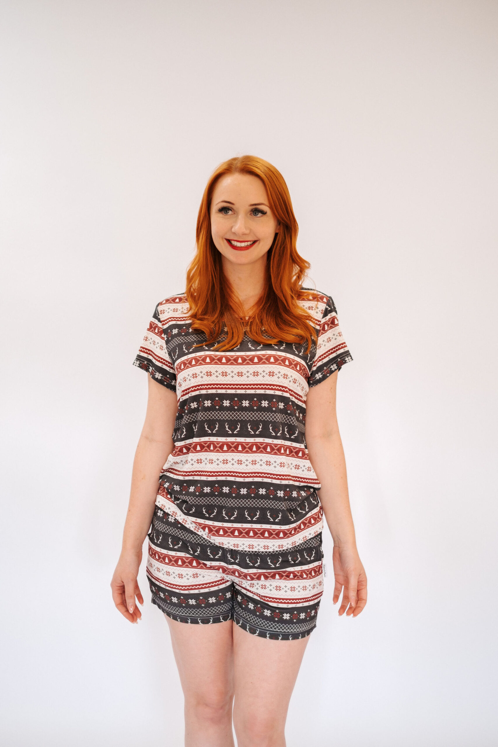 Match with your family and friends this Christmas in our Fair Isle pyjama set! This set features a pattern of snowflakes and trees combined with our signature antlers, in a sophisticated colour scheme of navy blue, maroon and cream. The Fair Isle print has been exclusively designed for Fawn & Hart and is traditional, classic and timeless. Made from an incredibly soft and breathable modal fabric, designed to keep you cool and comfortable this summer.