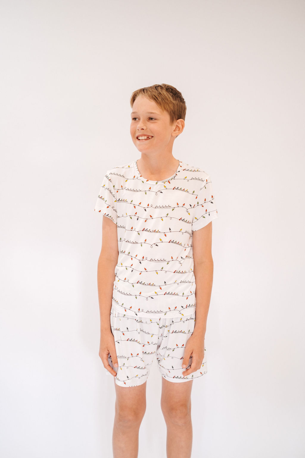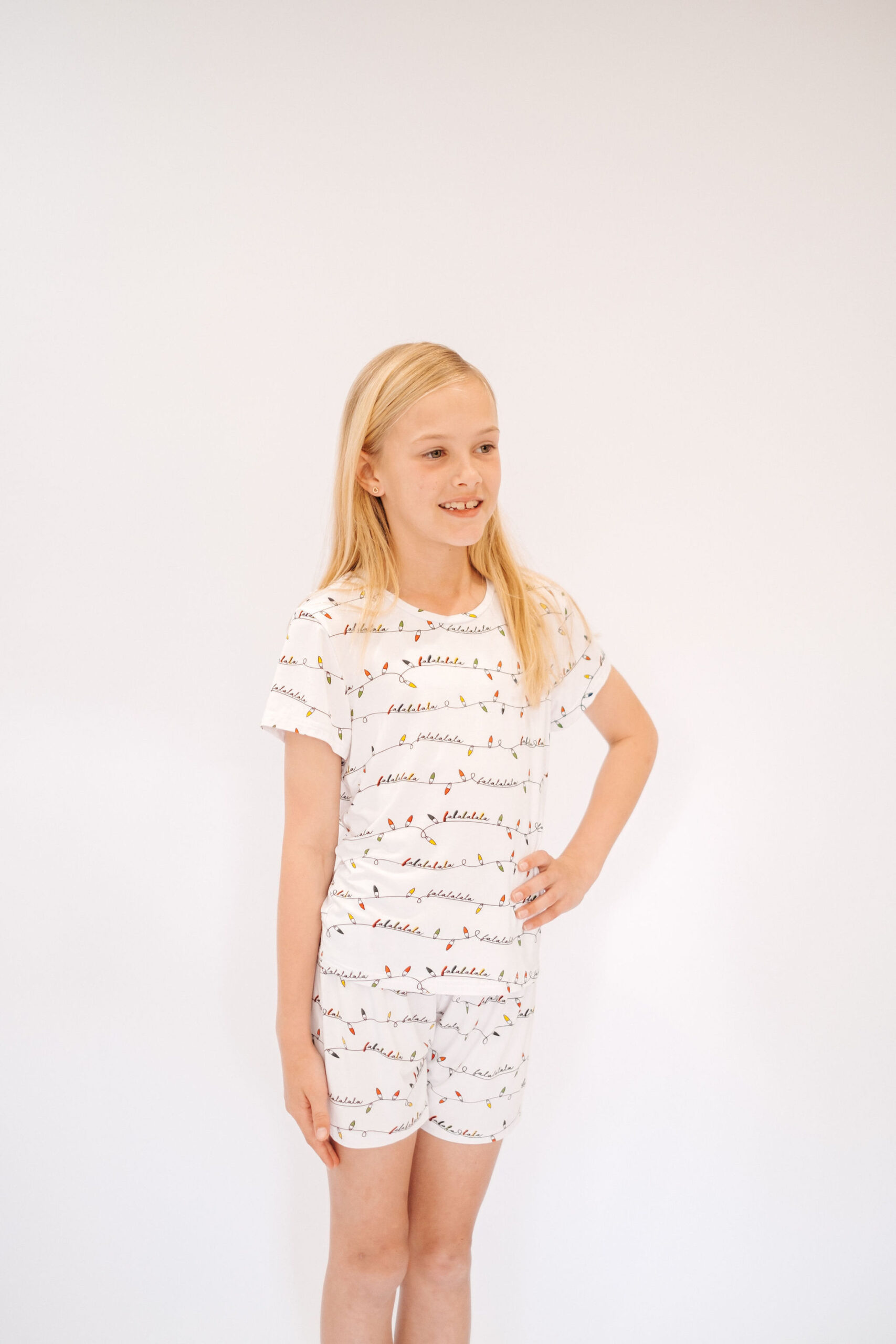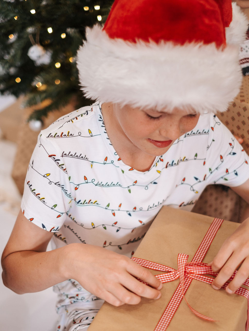 Our exclusive Falalalala print provides a fun pop of colour to your festive family sleepwear, featuring strings of Christmas lights on a white fabric. Made using an incredibly soft and breathable modal fabric, designed to keep you cool and comfortable this summer. Match with your loved ones and add some holiday cheer to your Christmas! ‘Tis the season to be jolly (falalalala, lalalala)!